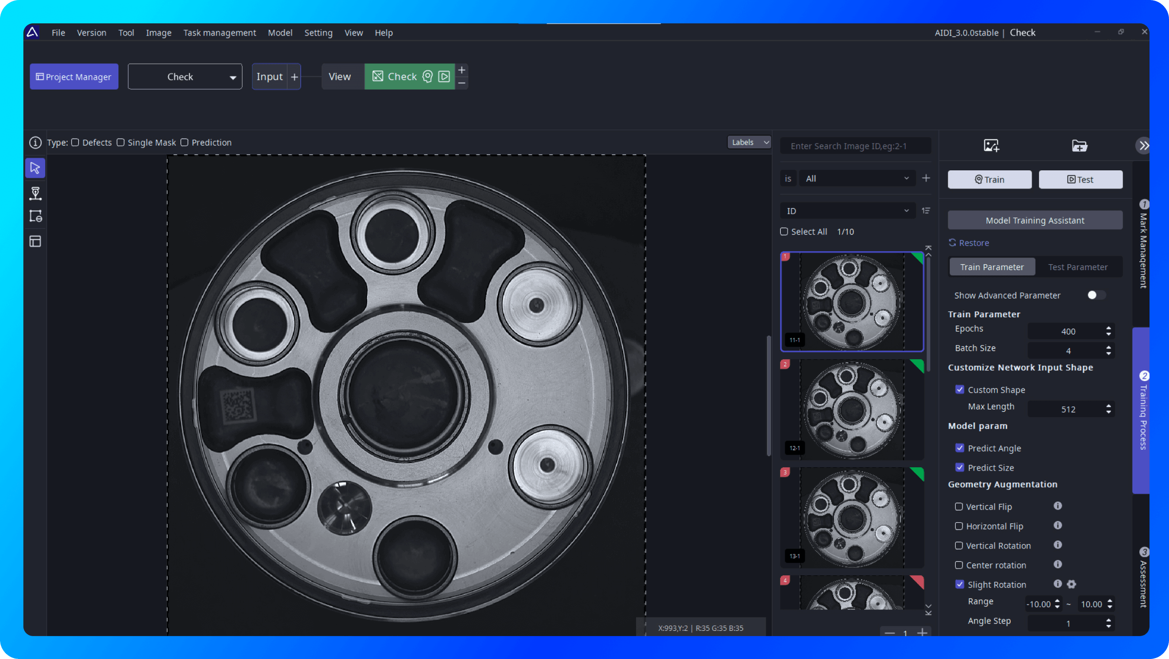 A fully self-developed network targeting at faster inference speed (0.5ms for Classify) and lower data dependence (20-30 NG images), featuring anomaly learning and CPU inference.